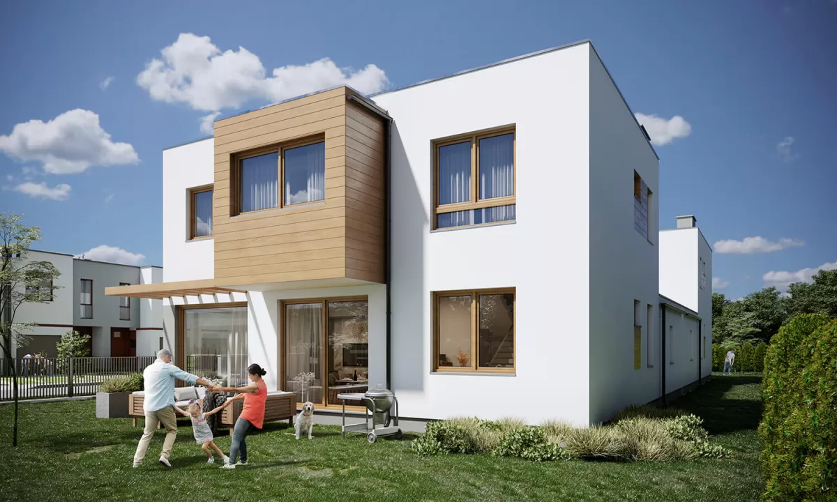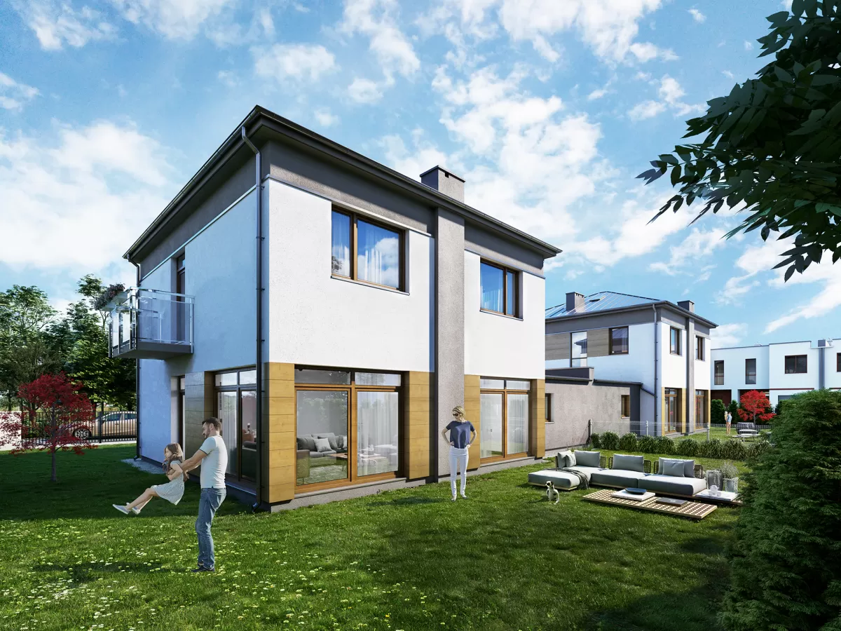 Nowoczesne budownictwo, wykorzystujące naturalne materiały, to idealna kompozycja funkcjonalności i estetyki, jaką gwarantuje Osiedle Ville Poranna. Składają się na nie trzy przestronne bliźniaki stworzone z myślą o spełnieniu potrzeb Twoich i Twojej rodziny. Do wyboru są działki o różnej wielkości, nawet do 600m2, na terenie których znajdują się powierzchnie mieszkalne do 190m2. Bliźniaki połączone są ze sobą garażami, co gwarantuje niezaburzony spokój i prywatność pomimo bliskości sąsiadów. Dodatkowym atutem Osiedla Ville Poranna jest bardzo dobra komunikacja z Warszawą.